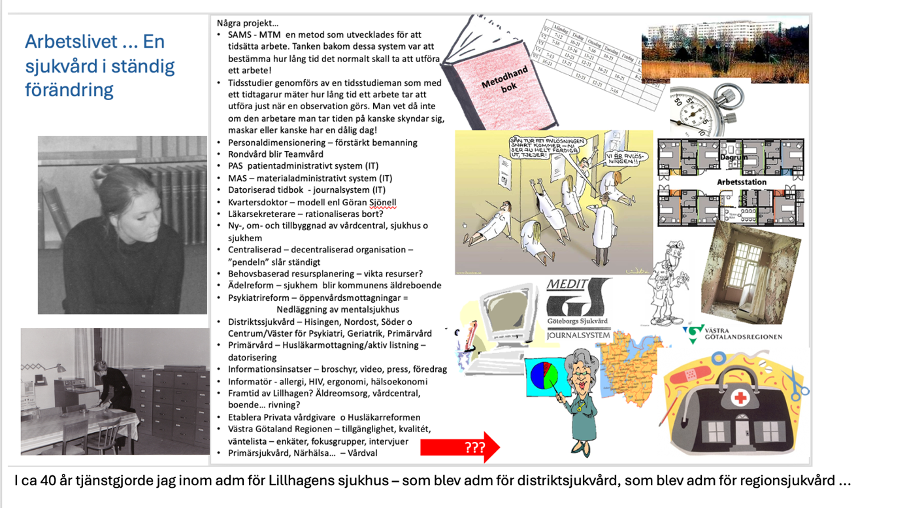Jag blev antagen och så började en lång bekantskap och en utvecklande anställning som varade i ett 40-tal år. Till saken hör att jag redan under 1966 blev anställd inom vården vid Lillhagens sjukhus. Läste Förvaltningskunskap och återkom nu efter studieuppehållet.