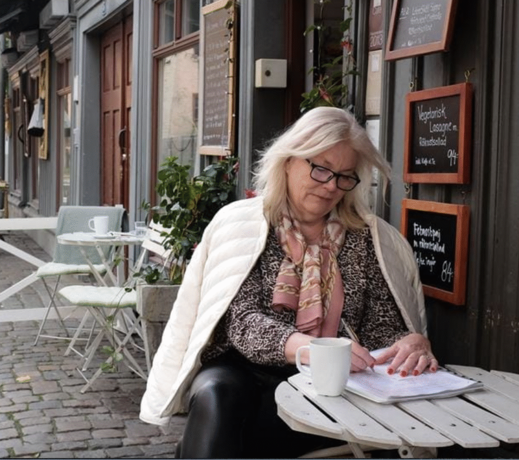 – Jag tar dagen som den kommer. Ofta leder en association till en annan och så är jag igång. Häromdagen när jag var i tvättstugan kom jag att tänka på barndomens brygghus. Doften av grön såpa och mina inre bilder av tant Annie i stora gummistövlar, tvättlinor och ångan från brygghuset satte igång mitt skrivande den dagen. Jag ger mig ut på stan i stort sett varje dag. Ibland kliver jag på vagnen och ser vart den bär iväg. Hoppar av när lusten faller på, går runt och spanar och så plötsligt uppenbarar sig ett spännande kvarter eller en detalj som jag vill veta mer om.