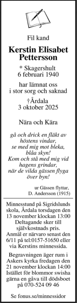 Kerstin Pettersson – till minne